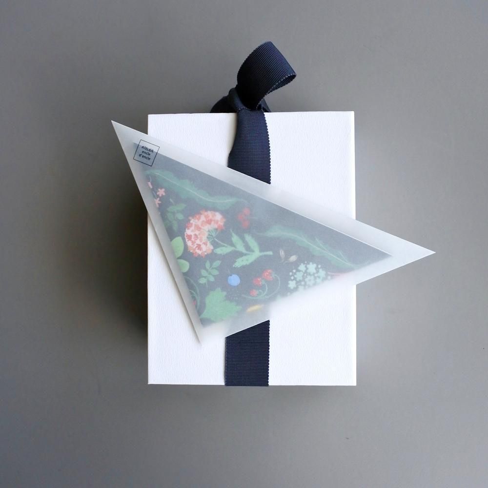 グリーティングカードのように贈り物にそっと添えると、三角形が良いアクセントに。